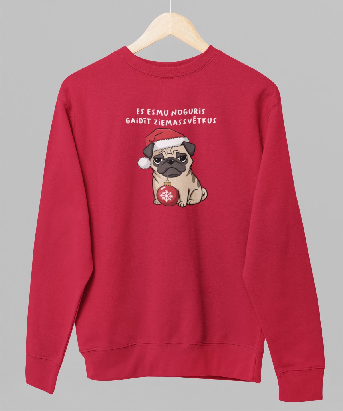 Sarkans UNISEX džemperis bez kapuces "Es esmu noguris gaidīt Ziemassvētkus"