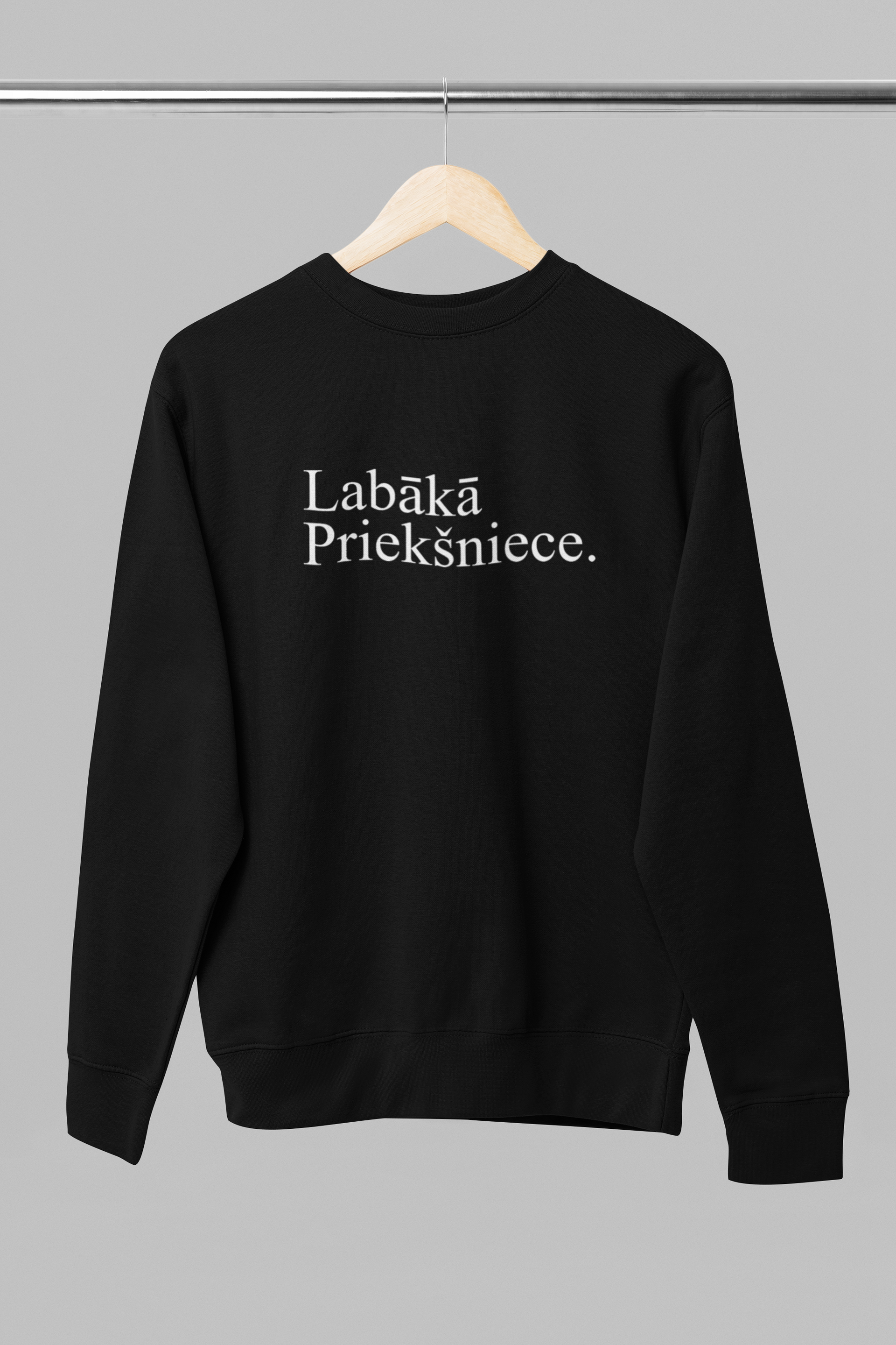 Melns UNISEX džemperis bez kapuces "LABĀKĀ PRIEKŠNIECE"