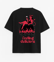 Oversized black T-shirt "Feeling delicious"