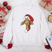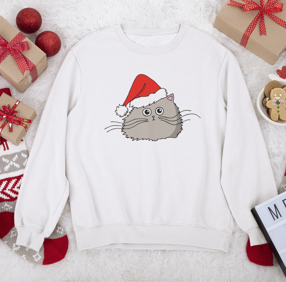 Balts UNISEX džemperis bez kapuces "Ziemassvētku kaķītis"