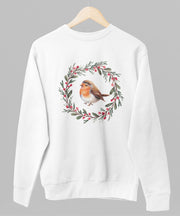 Balts UNISEX džemperis bez kapuces "Ziemassvētku putniņš"