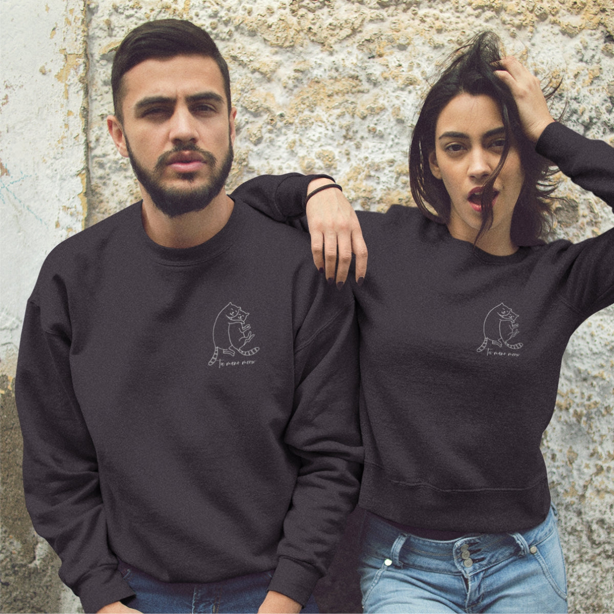 Melni džemperi bez kapucēm pāriem "Tu esi mans meow"