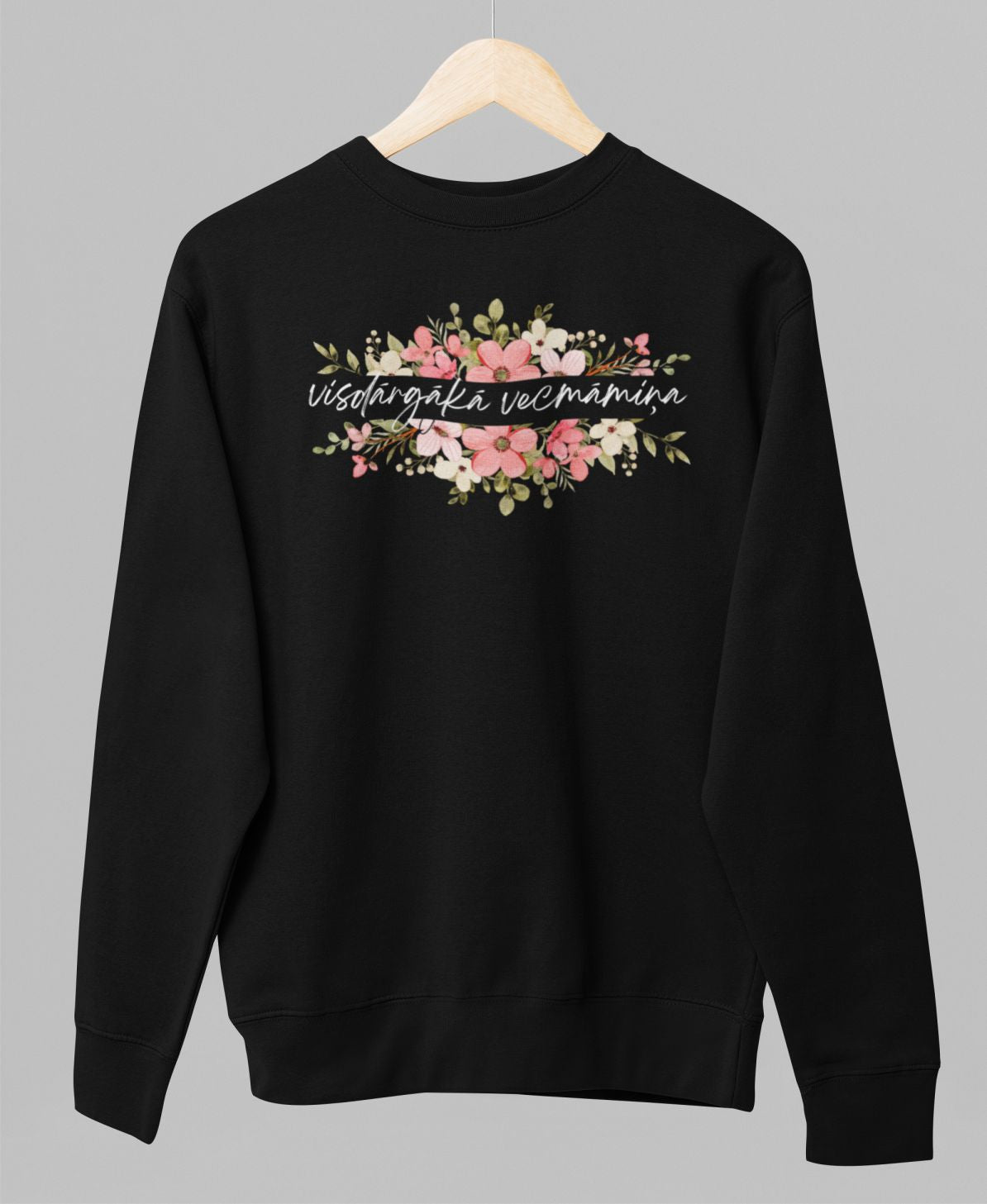 Melns UNISEX džemperis bez kapuces "Dārgākā vecmāmiņa"