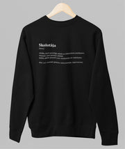 Melns UNISEX džemperis bez kapuces "Skolotājas apraksts"