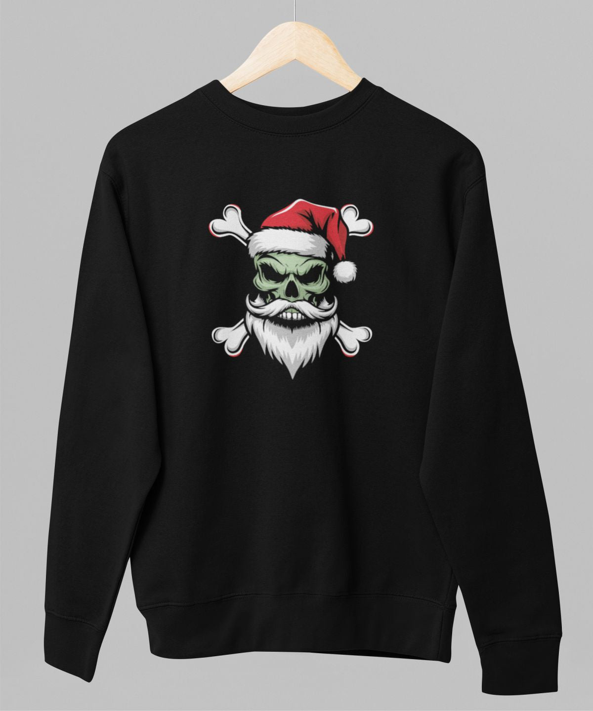 Melns UNISEX džemperis bez kapuces "Ziemassvētku galvaskauss"