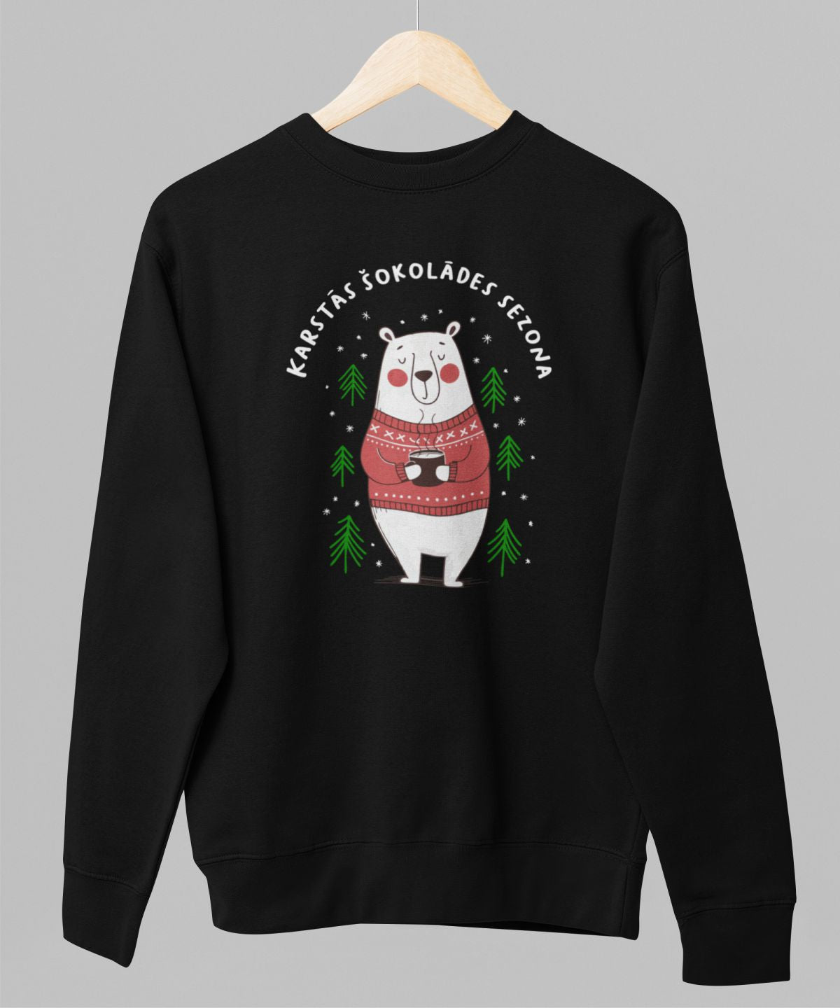 Melns UNISEX džemperis bez kapuces "Karstās šokolādes sezona"