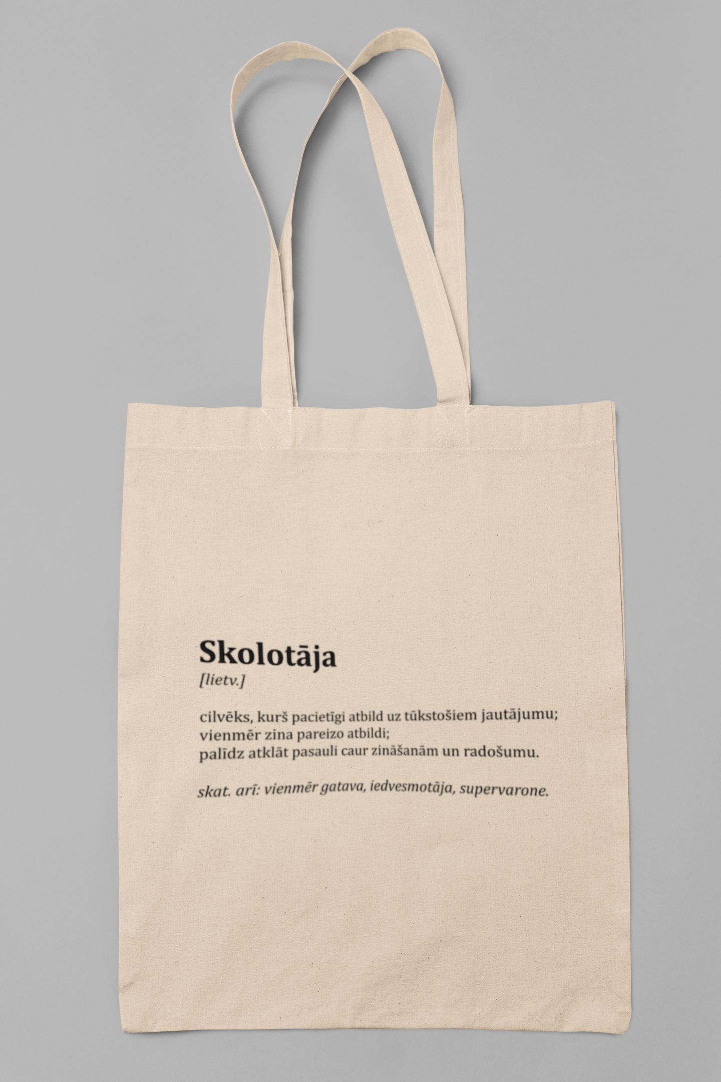 Auduma iepirkumu maisiņš ar vienkāršu dibenu "Skolotājas apraksts"