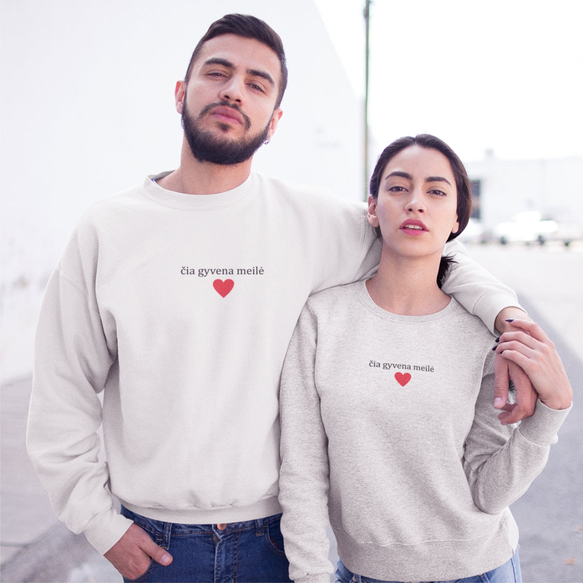 Balti džemperi bez kapucēm pāriem "Te dzīvo mīlestība"