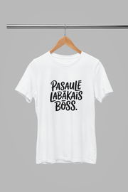 Balti uniseksa T-krekli "Pasaulē labākais boss"