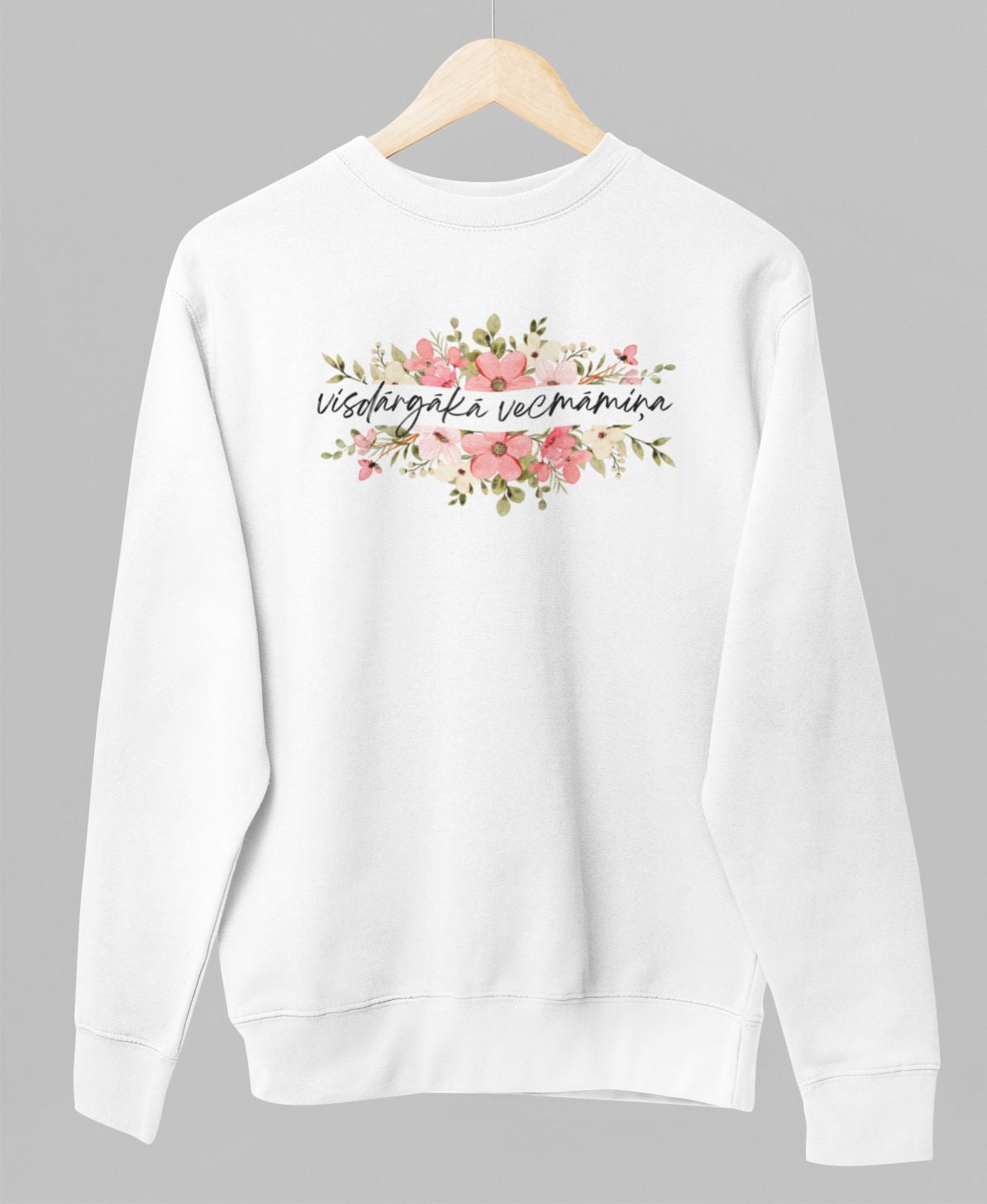 Balts UNISEX džemperis bez kapuces "Dārgākā vecmāmiņa"
